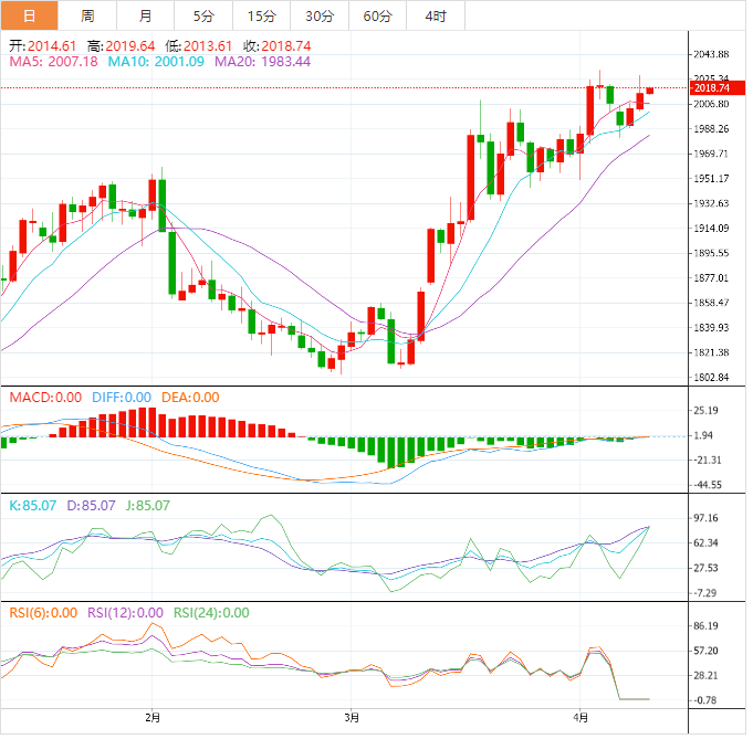 周四盘中,黄金交投于2018.74附近。黄金周三跳涨,因为通胀降温的迹象增强了对美国即将暂停加息的押注,尽管交易员为5月份再加息一次做了准备。消费者价格指数(CPI)在2月份上升0.4%后,3月份攀升0.1%,而路透的调查预测为上升0.2%。但在截至3月的12个月中,核心CPI上涨了5.6%,而2月上涨了5.5%。目前,市场认为5月会议上加息25个基点的可能性为71%,随后对6月暂停加息的押注为2比1。虽然黄金被视为对冲通胀的工具,但提高利率以抑制价格上涨的压力,对这种非孳息资产的吸引力构成了压力。