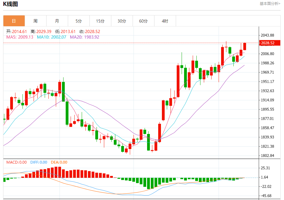 今日分析:在 2015.00 之上,看涨,目标价位为 2035.00 ,然后为 2044.00 。