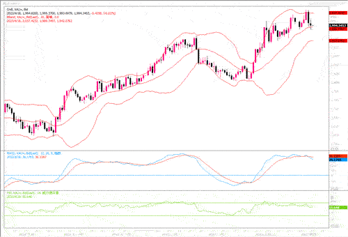 黄金价格周一(4月17日)下跌,一周来首次跌破2000美元这一关键大关。美市尾盘,现货黄金收报1995.03美元/盎司,下跌8.76美元或0.44%,日内最高触及2015.05美元/盎司,最低触及1980.90美元/盎司。