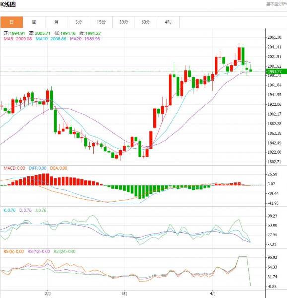 预计,今日金价交投将于支撑位1975.00美元/盎司以及阻力位2010.00美元/盎司之间。今日对于黄金价格的预期趋势为看空。
