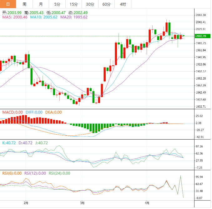 周五盘中,黄金交投于2002.39附近。金价周四再次升至2000美元的关键水平之上,因为在美国疲软的经济数据加强了美联储暂停加息的理由之后,美元和美债收益率回落。上周美国初请失业金人数上升,表明劳动力市场正在逐步放缓,而其他数据显示成屋销售减少,大西洋沿岸中部地区的工厂活动大大低于预测。数据推动美元指数下跌0.2%,而指标美债收益率也下降。