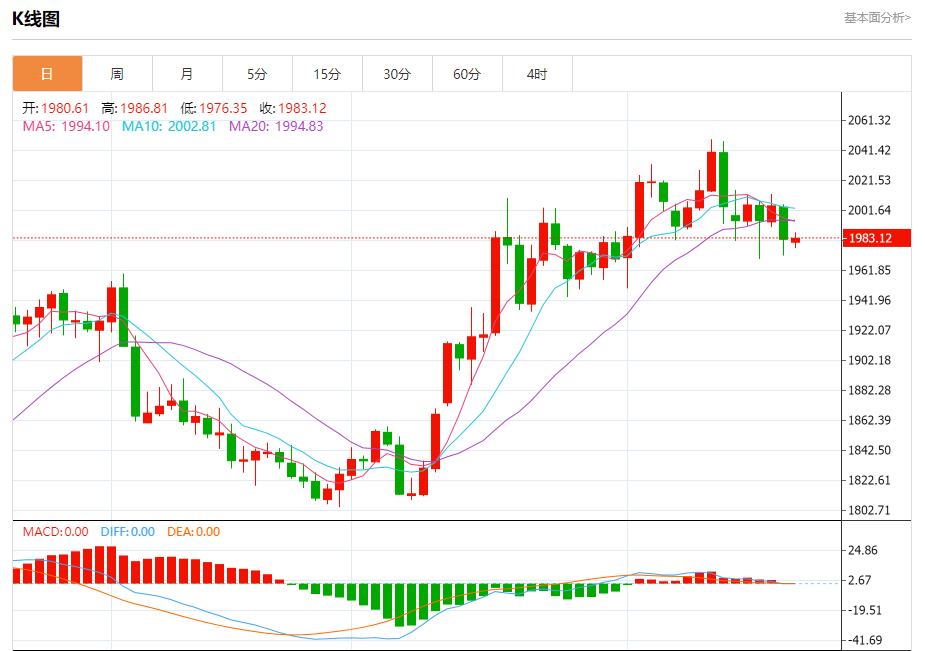 截止发稿,黄金价格现报于1983.28,涨幅0.04%(亚汇网编辑:冰凡)