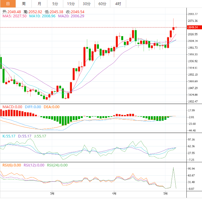 增加上行过滤器的是扩音器的顶线,最晚接近2,080美元,突破该顶线可能推动金价向2,100美元的整数推进。
