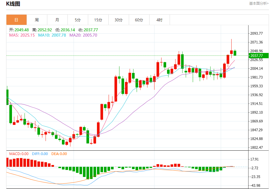 截止发稿,黄金价格现报于2037.76,跌幅0.57%(亚汇网编辑:冰凡)