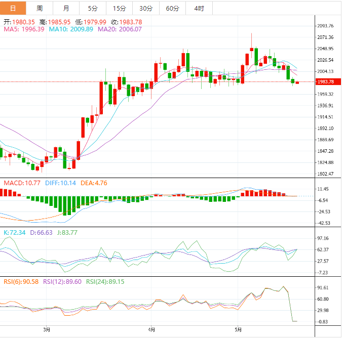日内关注,澳大利亚4月就业人口变动,美国截至5月13日当周初请失业金人数,美国截至5月6日当周续请失业金人数,美国4月成屋销售年化总数。需要关注的大事件包括英国央行首席经济学家皮尔发表讲话,美联储理事杰斐逊就经济前景发表讲话,达拉斯联储主席洛根在德克萨斯州银行家协会大会上发表讲话。