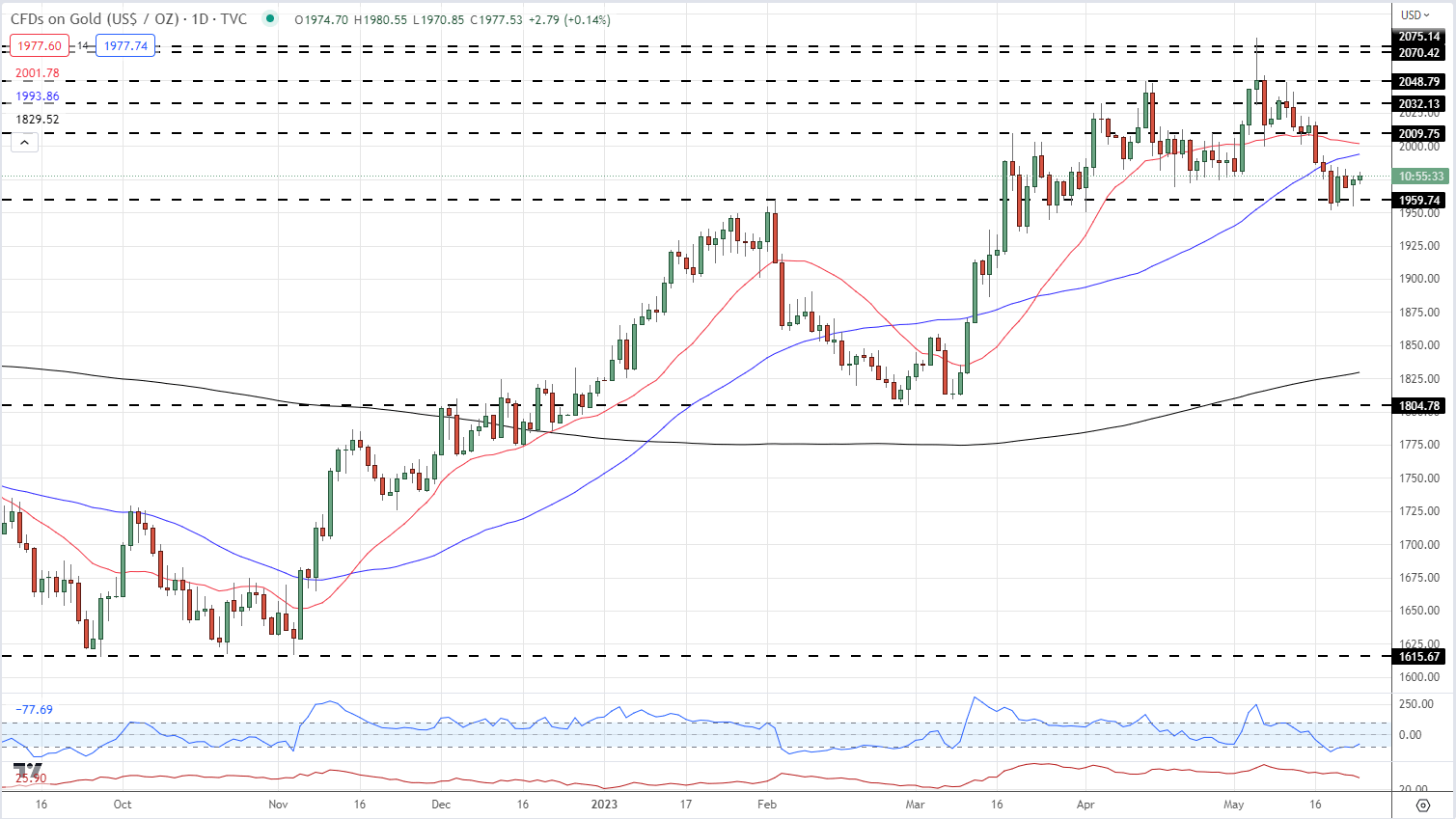 黄金价格保持在1952的最近几周低点附近。如果美国债券收益率进一步回升,可能会重新测试这一水平。从5月4日2081的数十年高点开始的抛售。一直坚持不懈,几乎没有任何持续的反弹。如果黄金要推高,那么20日和50日移动平均线的阻力就在1993/0z美元。2001。将需要令人信服地取出。