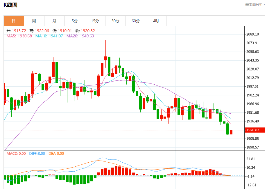 周五盘中,现货黄金报1922.22,涨幅0.45%。