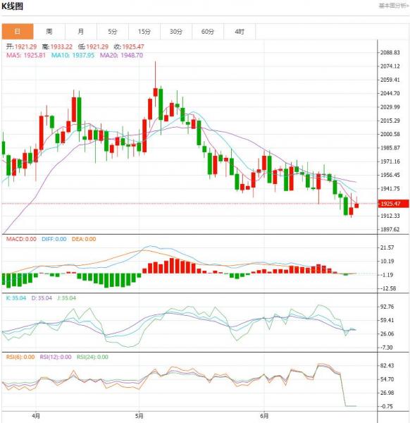周三(6月21日)欧市盘中,现货黄金短线突然一波急跌,金价刚刚跌破1930美元/盎司,最低目前触及1925.75美元/盎司,刷新日内低点。美联储主席鲍威尔在众议院金融服务委员会的讲稿提前发布,讲稿内容与他在上周FOMC会议新闻发布会上的开场发言类似,保持偏鹰派基调,这令金价承受下行压力。
