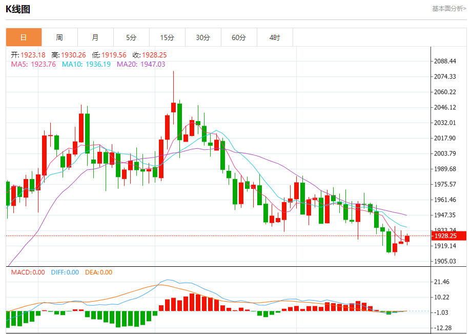 周二盘中,现货黄金报1927.81,涨幅0.25%。
