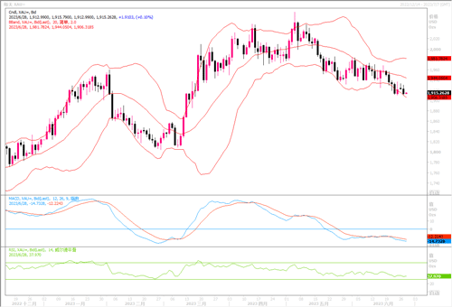 技术面上来看,上周五日线收了一根小阴柱,布林带开口,价格短线阶段性下行。4小时图中来看布林带即将开口,KDJ指标形成死叉,价格维持低位震荡运行。小时图中来看布林带开口,KDJ指标形成死叉,短线还是主要关注回调情况。日内下方关注1910/1884/1860,上方关注1930/1945。