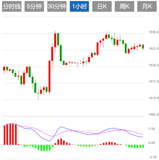 从黄金4小时图来看,金价守住上周从多日低点反弹的势头,同时保持在自5月底以来的下行趋势通道内。值得注意的是,黄金连续四个交易日上升的势头得到MACD指标看涨信号的支撑,这反过来表明黄金将进一步上升。对黄金买家来说,另一个看涨信号是,金价成功突破两个月来的下行阻力线,目前在1926美元/盎司附近构成短期支撑。