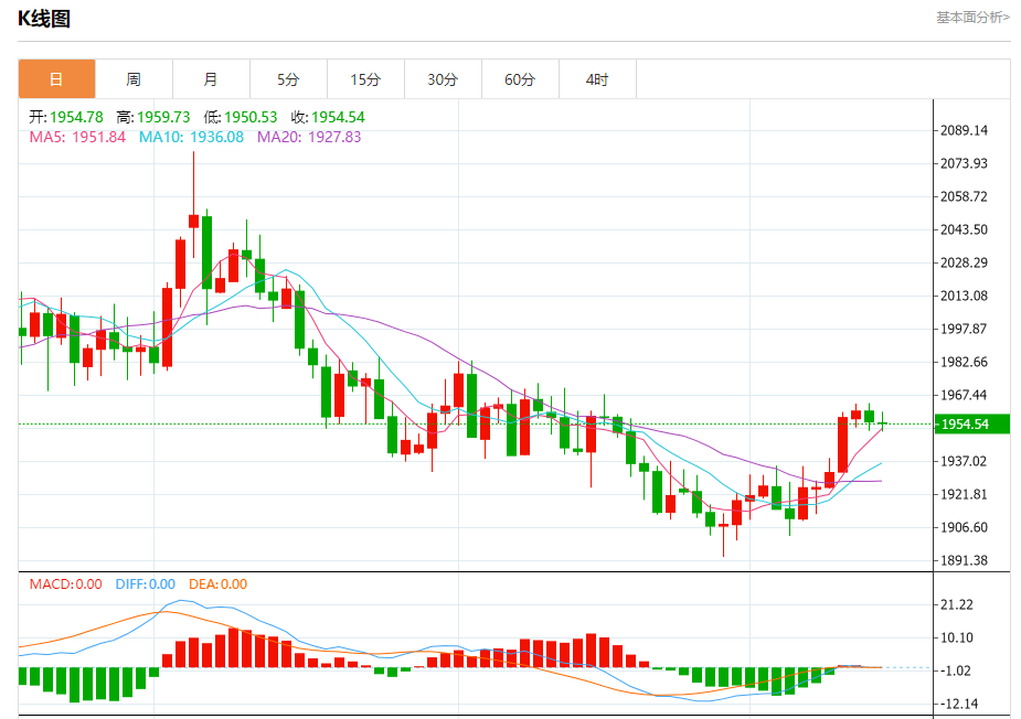 技术点评:在1954.00之上,为多头信号,向上的目标位为1963.00。