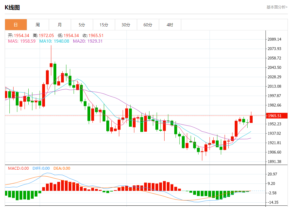 周二盘中,现货黄金报1966.06,涨幅0.58%。