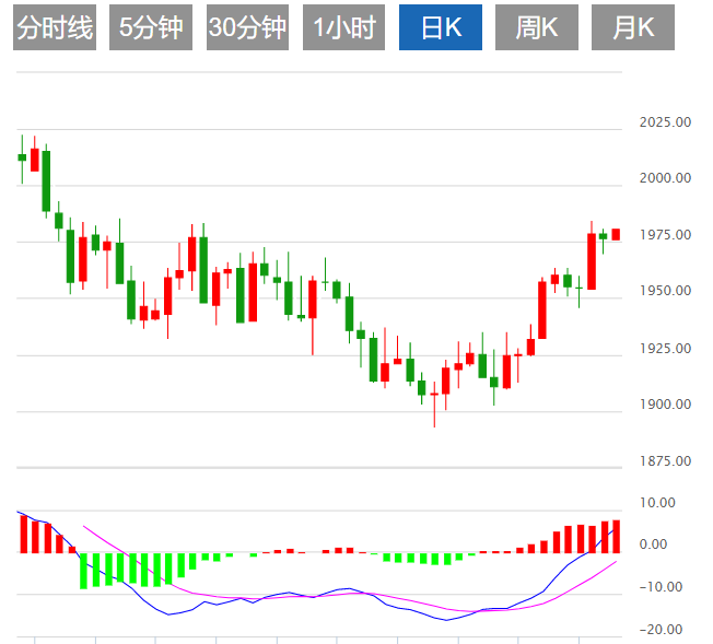 技术上,金价小幅上涨突破1970美元支撑汇合处,包括一日枢纽点、一个月枢纽点和一日内的23.6%回档位。不过日图保利加通道上轨以及一日内的61.8%回档位位于1978美元,为附近关键支撑位。