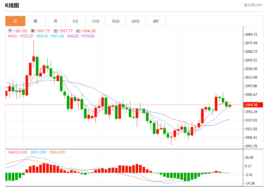 周一盘中,现货黄金报1967.52,涨幅0.29%。