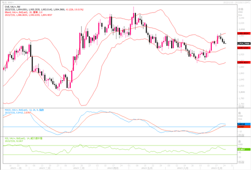 近期,黄金价格受到各种因素的影响,这些因素可能会影响其在市场上的走势。影响金价的关键因素之一是美元指数的表现。美元指数近期保持着稳中有升的表现,最近已接近7月20日创下的一周高点。美元走强可能限制金价的上涨。另一重大影响因素是,本周全球主要央行欧美日将挨个登场计划宣布利率决定。值得注意的是,美联储、欧洲央行(ECB)和日本央行将在周三至周五的48小时内发布公告。尽管市场已经消化了美联储和欧洲央行加息25个基点的影响,但焦点将集中在美联储主席鲍威尔和欧洲央行行长拉加德关于未来货币政策的声明上。任何更强硬立场的暗示都可能导致利率峰值预期的上升,从而增加持有黄金等无收益金条的机会成本,从而施压于黄金。此外,黄金的供需动态在决定其价格方面发挥着至关重要的作用。截至7月21日当周,印度的实物黄金需求陷入停滞,而在中国,金条以高溢价出售。这些地区需求变化可能会影响金价,特别是考虑到印度和中国是贵金属的重要消费者。全球最大的黄金ETF持仓量7月21日小幅上涨0.57%。总之,本周金价走势如何,都需要密切关注上述影响因素的变化情况。