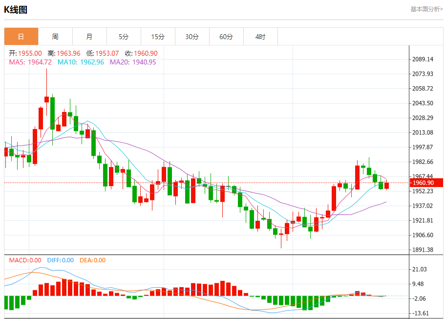 周二盘中,现货黄金报1960.79,涨幅0.31%。