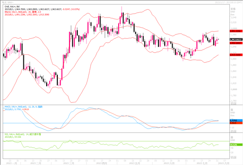 技术层面上,日线录得影线较长小幅阳线,短期金价扩大涨幅再度企稳于日线移动平均线技术指标支撑位价格上方,整体日线移动平均线呈收窄形态,维持长期偏震荡趋势指引参考。小时线显示,短线金价破位走高一度形成对小时线60日均线向上突破走势,短线金价持续走高加剧小时线RSI超买价格表现,短线高位回落逐步形成技术指标修正走势,当前金价回落形成小时线技术指标支撑位回踩走势,日内仍将面临较为密集技术指标支撑位有效性考验。当前日线图上的下方密集支撑水平在1950-1945附近,而上方的需突破的阻力依次是1973、1985。