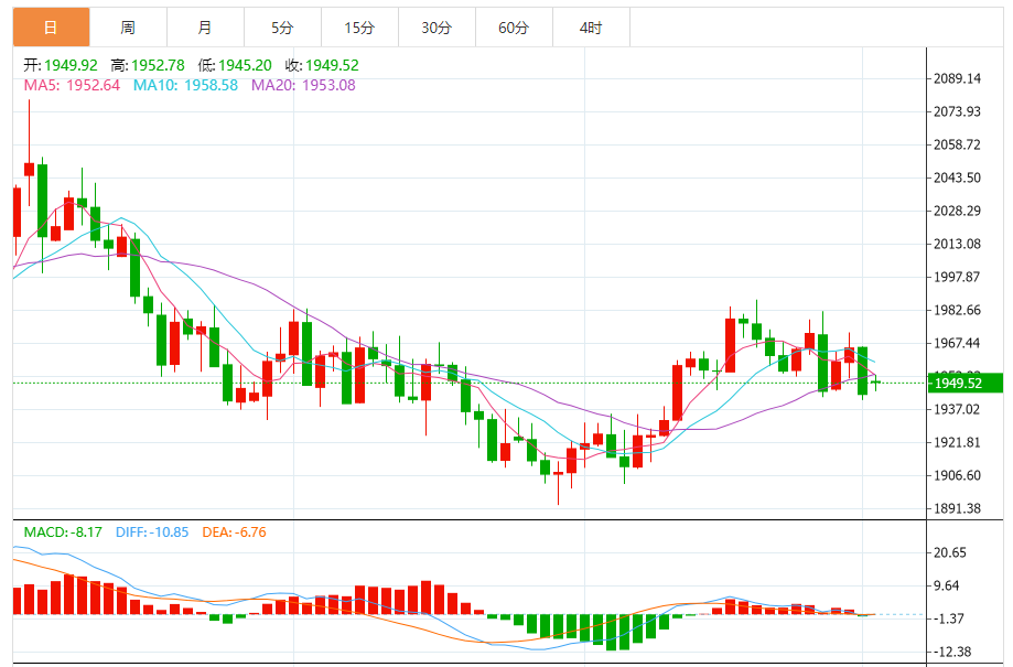 日线上看,金价遇阻1951美元,后市有望重新下探1940美元,它们分别是1893美元-1987美元上行区间的38.2%斐波那契回档位和50%斐波那契回档位。