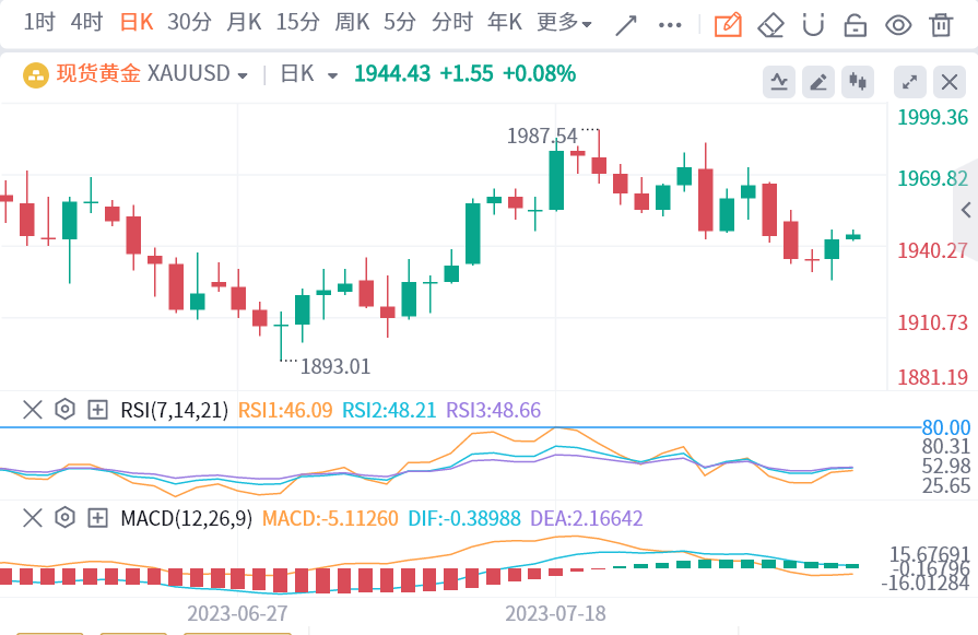 上周五当天,美国劳工部的家庭调查显示,7月非农就业岗位增加18.7万个,低于接受路透调查的经济学家的预测,后者预计增长20万个。5月和6月就业岗位增长数据被下修,表明在美联储大幅加息后,劳动力需求正在放缓。就业岗位增长不及预期让本周美国公债收益率飙升的走势暂停,也阻止了美元近期的升势。此次数据是就业市场正在缓慢降温的又一迹象,或许是一个受欢迎的迹象,因为金融市场仍在争论美联储是否会在今年年底前停止加息。不少机构分析认为,美国就业市场正在缓慢降温,这正是美联储希望看到的。市场越来越相信,联邦基金利率已处于最终水平。当这一点得到证实时,毫无疑问利率唯一的出路就是下行,这对黄金是利好。为此,投资者对于本周将要公布的CPI数据充满期待。若该项通胀数据继续呈现明显下降之中,则可以进一步佐证,经过前十多次的加息后,有可能达成美联储的软着陆目标。那么息口将有可能宣布告别继续上调的周期,黄金从中受益。相反,如果通胀情况未现明显改善的话,那么9月份的加息预期就会再度提升,届时势必将继续施压于黄金。
