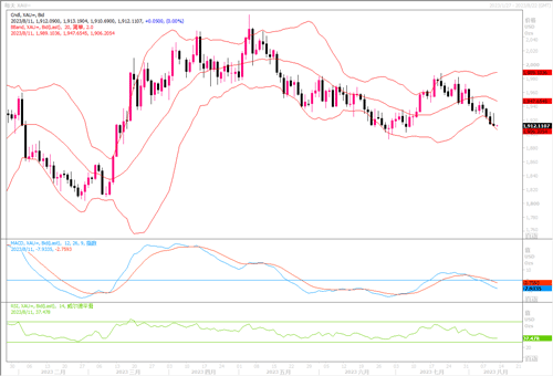 周四(8月10日) 虽然美国7月份核心CPI同比涨幅确实略低于预期,但的涨幅仍高于前一个月,且离核心2%通胀目标还较远。美联储9月份加息与否仍不明朗,黄金为此出现先升后跳水的低迷走势,当日下跌0.08%,收盘于1912.14美元,盘中最低至1911.70美元。