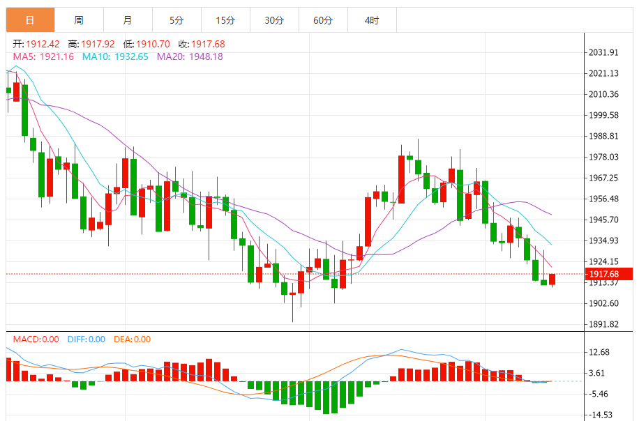 FXEmpire分析师James Hyerczyk表示,黄金目前交易价格为1916.05美元,较前4小时收市价1913.54美元略有上涨,显示出最小的上涨趋势。