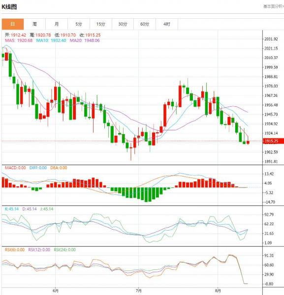 周五(8月11日),美国公布的PPI指数意外上升,终结了12连跌,数据公布后现货黄金短线急跌。不过,随后公布的密歇根大学消费者通胀预期数据有所降温,金价短线反弹至1920美元附近。