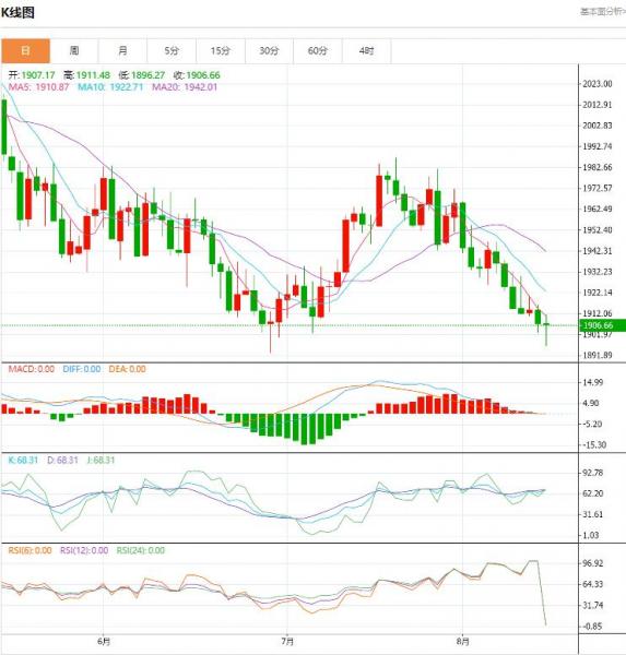假如金价遭遇一些后续抛售并跌破1900美元/盎司关口,将确认金价再度破位,并为进一步下跌铺平道路。金价随后可能容易加速跌破6月低点(约1893-1892美元/盎司区域),并跌向1870美元/盎司水平区域附近的下一个支撑。若失守上述支撑,那么金价料跌至1858-1857美元/盎司区域。上行方面,Menghani指出,1910美元/盎司区域可能会成为金价短期障碍,然后是周一高点(在1916美元/盎司区域附近)。若突破上述水平,这可能推动金价突破1925美元/盎司短期阻力,并升向1934-1935美元/盎司区域和1942美元/盎司区域。