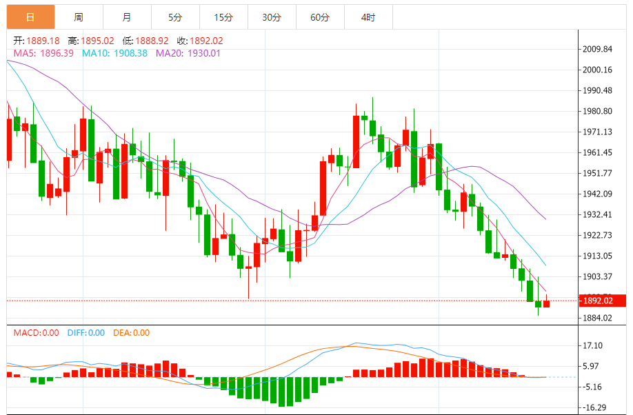 KCM Trade首席市场分析师Tim Waterer表示:“美元已从近期高点回落,这使得金价小幅走高。在目前的水平上,贵金属可能会出现一些逢低吸纳的情况。美元需要在某个时候转向看跌,黄金才能重新发现其魔力。黄金将在1900美元以下的水平交易多久,将取决于高债券收益率的对美元的支撑下持续多久。”