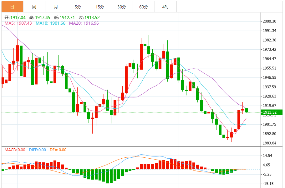 周五(8月25日),国际金价小幅走低,因美元指数升至6月7日以来新高104.276,但金价几乎铁定时隔四周后重新收涨。投资者等待美联储主席鲍威尔即将发表的讲话,这可能为利率前景提供线索。金价有望回踩1909美元后重新上涨。