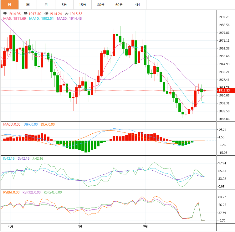 周一亚洲交易时段,金价接近每盎司1915美元,延续了上周的涨幅。最近美国国债收益率的回落促成了黄金价格的反弹。此外,上周公布的温和的美国经济数据,以及主要央行官员在杰克逊霍尔研讨会上发表的喜忧参半的声明,支撑了金价。