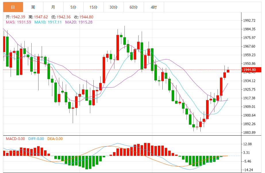 FXEmpire分析师James Hyerczyk表示,金价当前4小时价格为1944.88美元,略低于之前的1945.83美元。价格同时高于200-4小时移动平均线1933.96和50-4小时移动平均线1916.66美元,表明看涨势头。