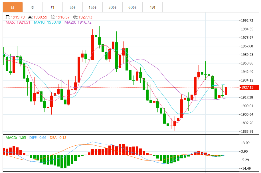 若金价持续受到55日均线压制,并向下失守200日均线.16附近支撑,则增加后市下行风险,进一步支撑分别参考1910关口和1900关口。