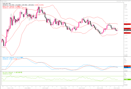 周四(9月14日),在美国公布超强增长的一系列经济数据后,现货黄金短线急走低6美元,跌至日内低点1901.9美元/盎司,但在纽约尾盘阶段有所回升,基本收复失地,但还是收盘在近期的低位区域1910.96美元。