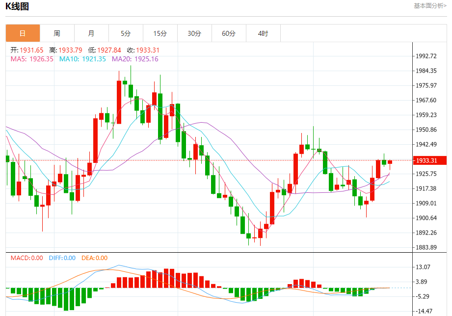 周三盘中,现货黄金报1932.59,涨幅0.07%。