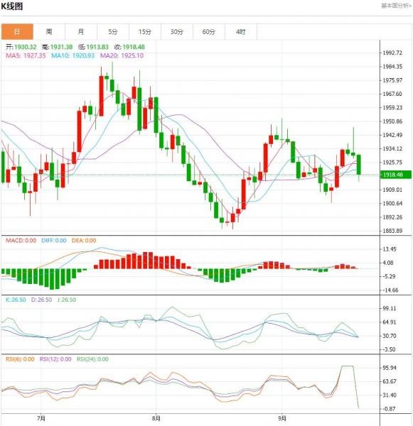 周四(9月21日)进入欧市盘中,美元与美债收益率维持在高位,黄金延续昨日自高位回落的势头,目前交投在1920美元附近,此前美联储决议释放的信号比预期更为鹰派。金价周四延续跌势,受累于美元和美国公债收益率飙升,此前美联储强化在利率问题上的鹰派立场。现货黄金下跌0.4%,交投在1922美元附近,前一交易日盘中一度触及9月1日以来最高,最终收低。美联储周三维持利率不变,但其最新的季度预测显示,今年可能会再次加息,并在2024年之前保持利率不变。