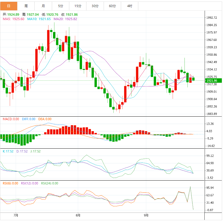 黄金价格跟随美元走势横盘