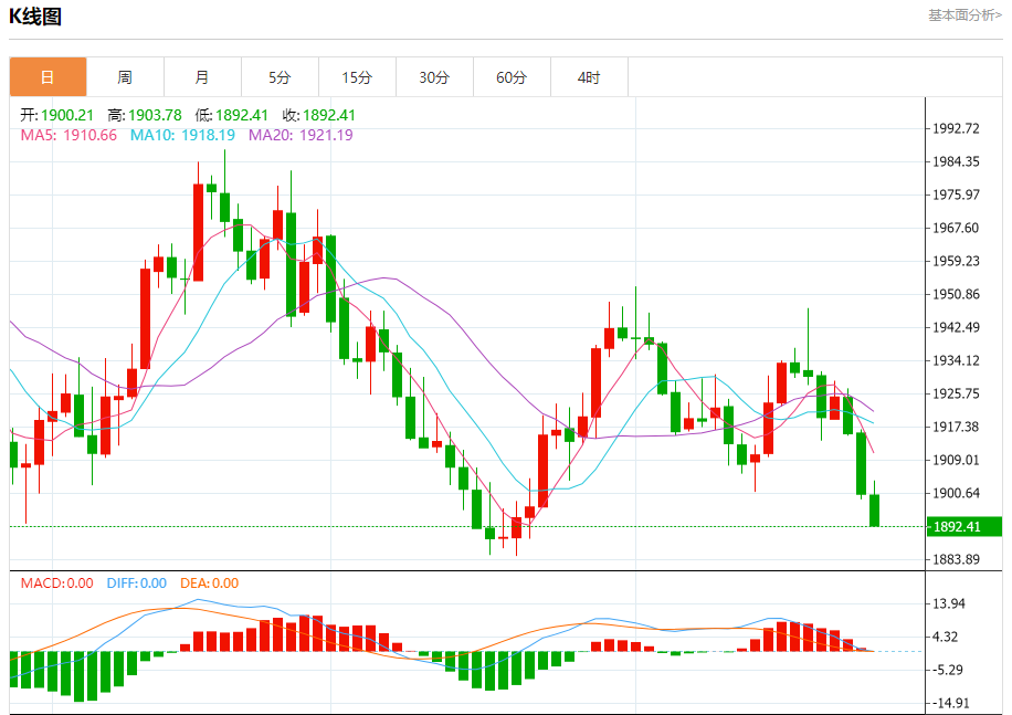 截止发稿,黄金价格现报于1892.58,跌幅0.41%。(亚汇网编辑:冰凡)