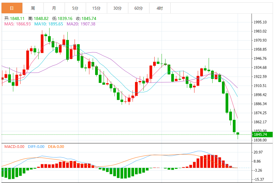 周一(10月2日),黄金短线跌破1845美元重要关口,对美联储进一步收紧政策的押注,成为压倒金价的最后一根稻草,交易员冒险冲动情绪进一步推动资金流离避险贵金属。技术分析称,尽管超卖,金价仍延续下跌趋势,似乎准备测试1820更低价。