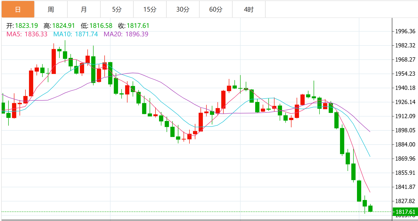 技术分析:金价可能进一步下滑测试1,800美元大关