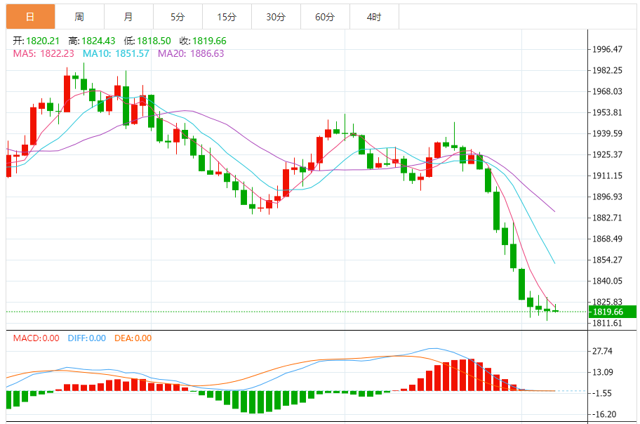 周四,现货黄金连续第九个交易日下跌,盘中一度跌至1813美元/盎司附近的数月新低。尽管美元处于极度超买状态,但黄金仍无法吸引买家。