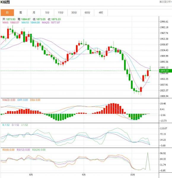 预计今日金价交投将于支撑位1865.00美元/盎司以及阻力位1900.00美元/盎司之间。今日对于黄金价格的预期趋势为看涨。