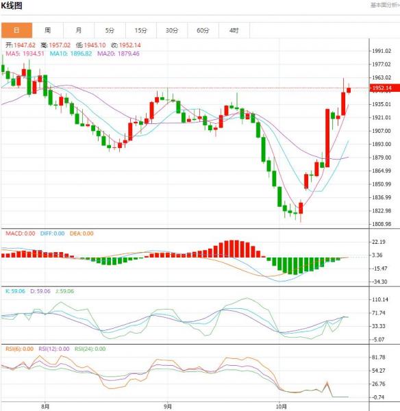周四(10月19日)进入欧市盘中,市场情绪谨慎,投资者等待关键的美联储主席鲍威尔的讲话,与此同时,中东局势仍处于令人不安的紧张氛围中,黄金维持高位盘整姿态,目前交投在1950美元附近,等待今日的进一步线索。金价徘徊在两个半月高位附近,因中东动荡升级提振对黄金的需求,同时投资者等待美联储主席鲍威尔定于今日晚些时候发表的讲话。