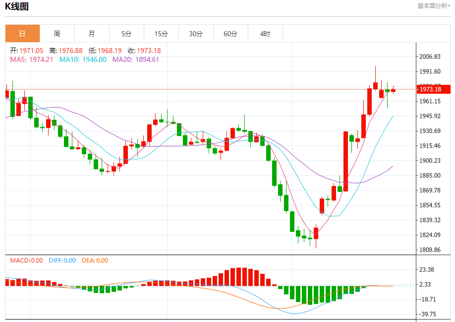 截止发稿,黄金价格现报于1973.34,涨幅0.12%。(亚汇网编辑:冰凡)