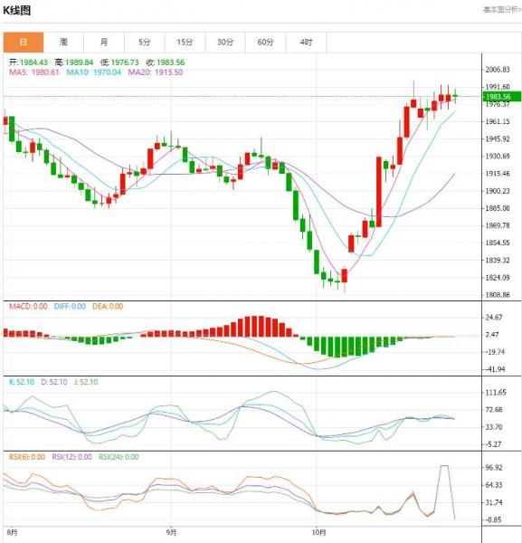 周五(10月27日),现货黄金延续前几日的高位盘整势头,周线有望连续第三周上扬,日内美元和美债收益率上扬,但中东紧张局势令黄金在周末前维持良好买盘,金价目前徘徊在1985美元附近,等待今日美联储最青睐的通胀指标——美国PCE数据的发布。
