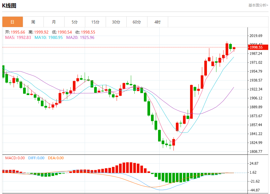 截止发稿,黄金价格现报于1998.67,涨幅0.13%。(亚汇网编辑:冰凡)