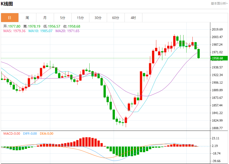 技术点评:跌破1970.00,为空头信号,向下的目标将会是1952.00。