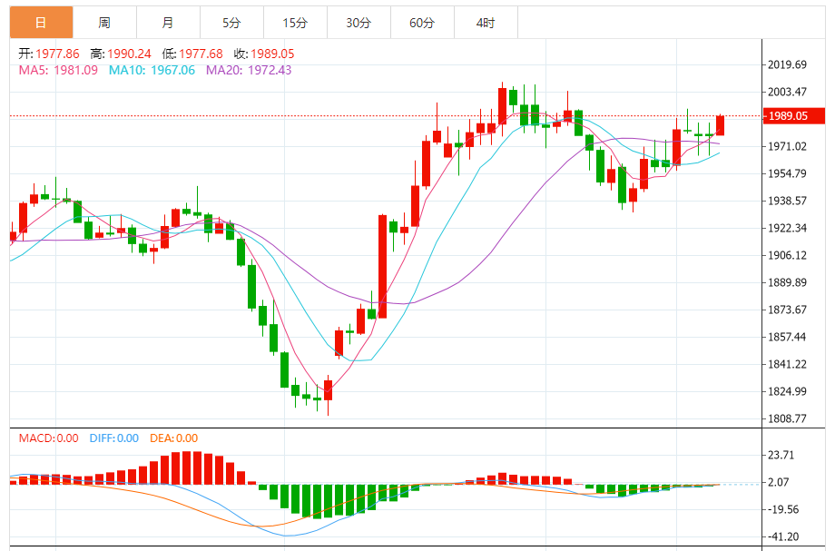 从黄金4小时图来看,从4小时走势图来看,技术指标支持金价继续上行。金价在突破关键阻力1981美元/盎司后,焦点将转移到1987美元/盎司,然后是1992美元/盎司。
