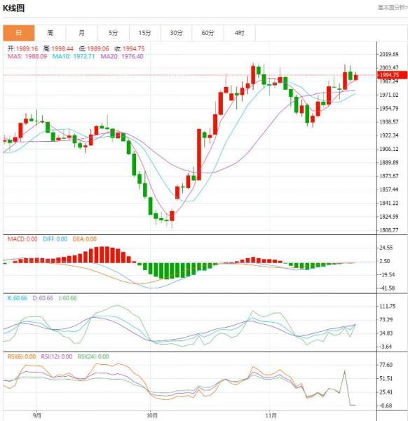 今天的预期交易区间在 1980.00 支撑位和 2005.00 阻力位之间。今日预期走势:暂时看跌