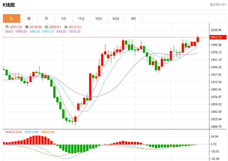截止发稿,黄金价格现报于2012.60,涨幅0.52%。(亚汇网编辑:冰凡)